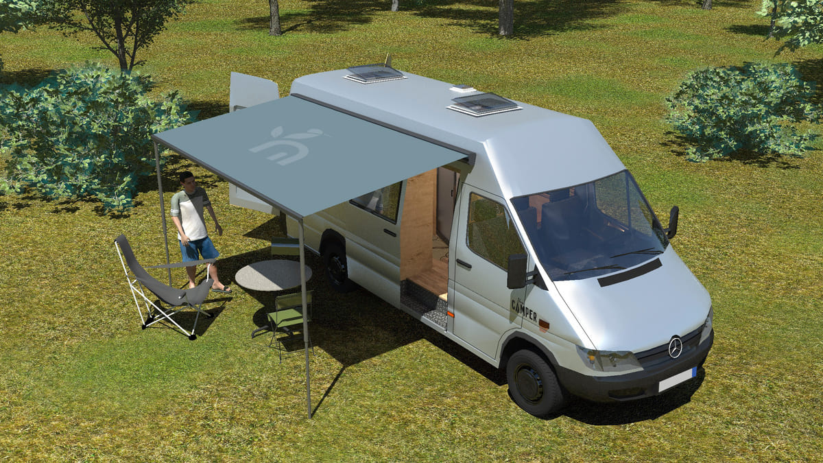 - Kit d’autonomie électrique : 3 panneaux solaires, onduleur et 4 batteries (environ 8000€)